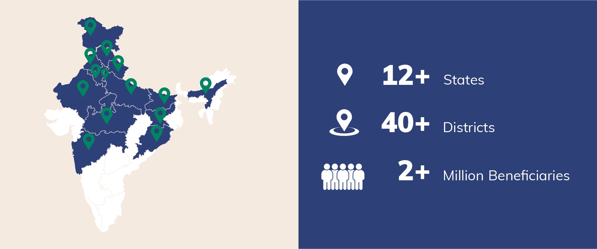 As an organization committed to social development for over four decades, we have been privileged to work across the length and breadth of this vast and diverse nation. Our journey has taken us deep into communities—both rural and urban—allowing us to understand ground realities and respond with meaningful, sustainable interventions. Today, we are actively engaged across more than 40 districts in 12 states of India, partnering with communities, institutions, and stakeholders to create lasting social impact in the areas we serve.