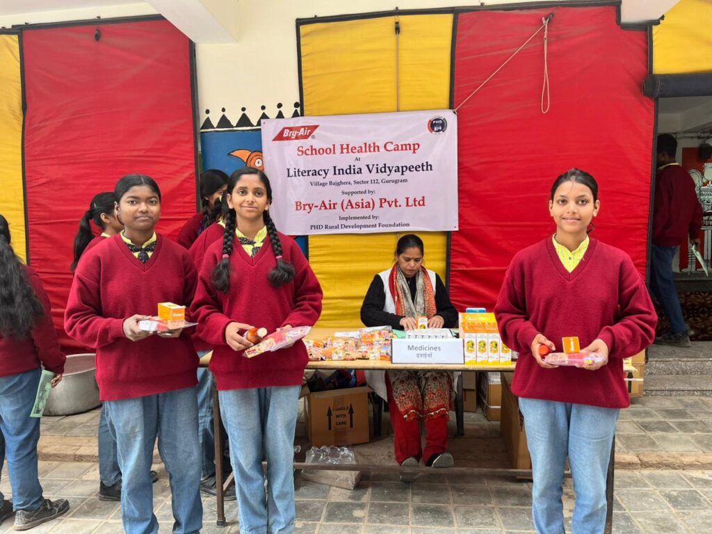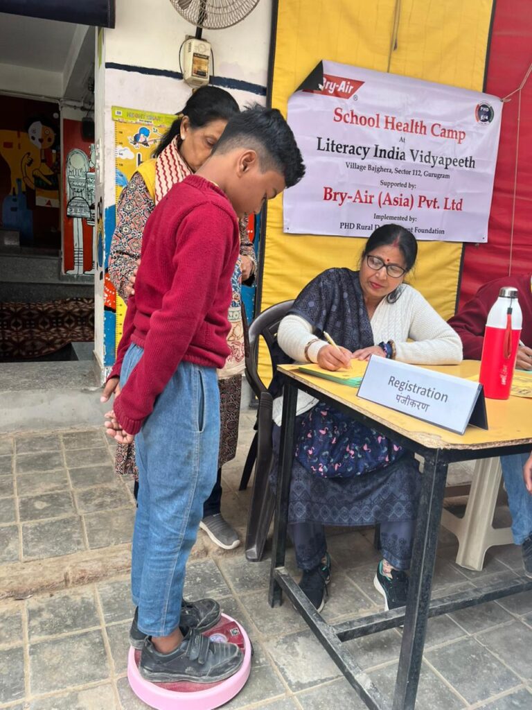 A five-day School Health Camp was successfully conducted from 16th to 20th February at Literacy India Vidyapeeth, Sector 112, Gurugram, with the support of Bry Air (Asia) Pvt. Ltd. The camp covered students from Classes I to X, ensuring comprehensive health screening and awareness.